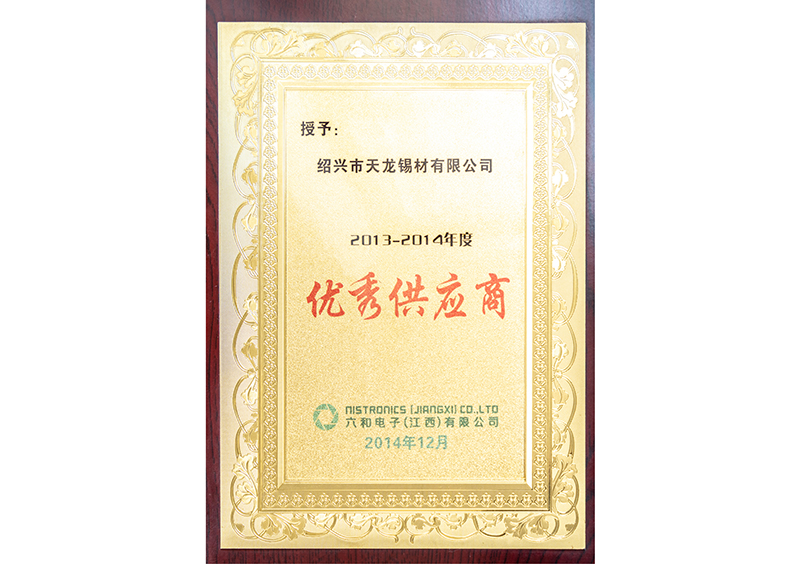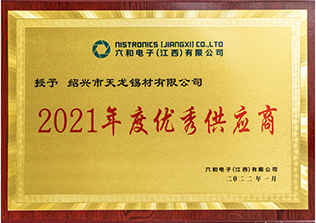六和電子2021年度優(yōu)秀供應商